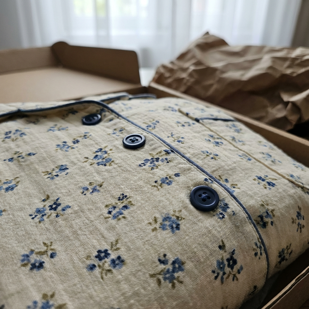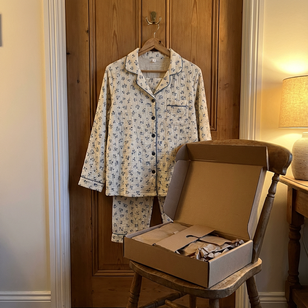 Piżama Flora wykonana jest w 100% z muślinu bawełnianego, co zapewnia wyjątkowy komfort i przewiewność. Idealna na ciepłe noce, pozwala skórze oddychać, gwarantując spokojny sen.